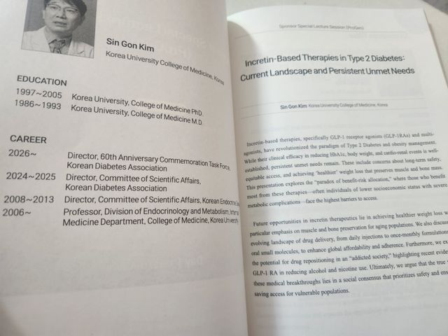 김 교수는 특히 아시아인의 신체적 특성을 정확히 이해해야 한다고 강조했다. 참가자들의 평균 BMI가 25.8㎏/㎡로 고도 비만 환자군과 구분되는 점을 짚으며, 내장 지방 위주의 복부 비만과 적은 근육량, 유전적으로 취약한 베타 세포가 아시아 당뇨의 핵심이라고 설명했다. 그는 "이런 환자들에게 20% 이상의 과도한 체중 감량을 강요하면 지방뿐만 아니라 근육과 뼈 건강까지 해칠 수 있다"며 "아시아 환자의 대다수에게는 5~10% 정도의 적정 감량을 유지하면서 당화혈색소를 효과적으로 조절하는 것이 보건학적으로 훨씬 효율적이고 가치 있다"고 역설했다.