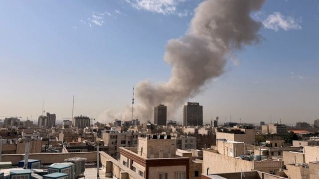 이란 수도 테헤란 도심에서 28일 이스라엘의 공습으로 추정되는 폭발로 검은 연기가 치솟고 있다. / 연합뉴스