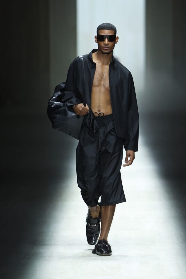 ‘프리마베라’는 과장된 장식을 덜어내고 신체 그 자체를 중심에 두는 방식으로 실루엣과 텍스처, 소재에 대한 새로운 어휘를 제안합니다. 가벼움과 자연스러운 움직임, 인체 구조를 반영한 설계는 집요한 개발 과정을 거쳐 완성된 ‘심리스 가먼트’로 구현되었죠. 열 마감을 통해 봉제선의 흔적을 지운 실루엣, 정교하게 계산된 곡선형 헴 라인은 옷이 몸 위에서 어떻게 존재해야 하는지를 다시 정의합니다. 신체에 대한 탐구에서 출발한 이번 시즌은 1990년대 톰 포드(Tom Ford) 시대 구찌가 품었던 관능의 잔상을 은근히 환기시키죠.