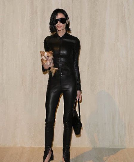 공개된 사진 속 데미 무어는 블랙 레더 소재의 집업 톱과 타이트한 팬츠를 매치한 올블랙 스타일링으로 시선을 압도한다.