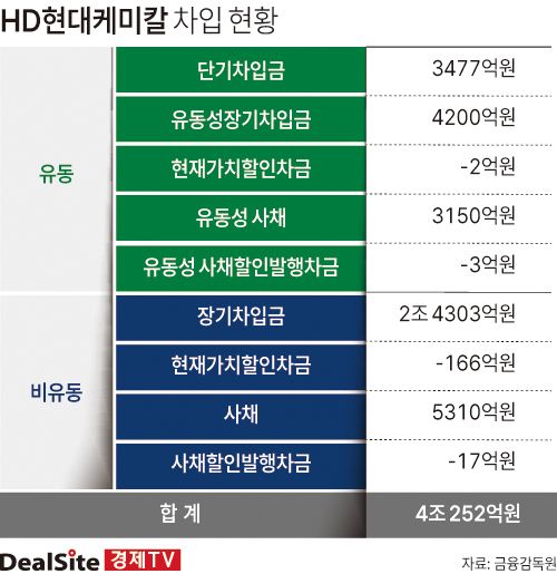 영구채는 회계상 자본으로 인정되는 만큼 총 차입금은 기존 4조원에서 3조원 수준으로 감소하게 된다. 이에 따라 연간 금융비용 절감 효과도 기대된다. 영구채 발행에 따른 지급액은 이자가 아닌 배당금으로 처리되기 때문이다. HD현대케미칼은 차입금 1조원 어치 만큼 영구채를 찍어 주요 대주인 산업은행에 지급하게 된다.