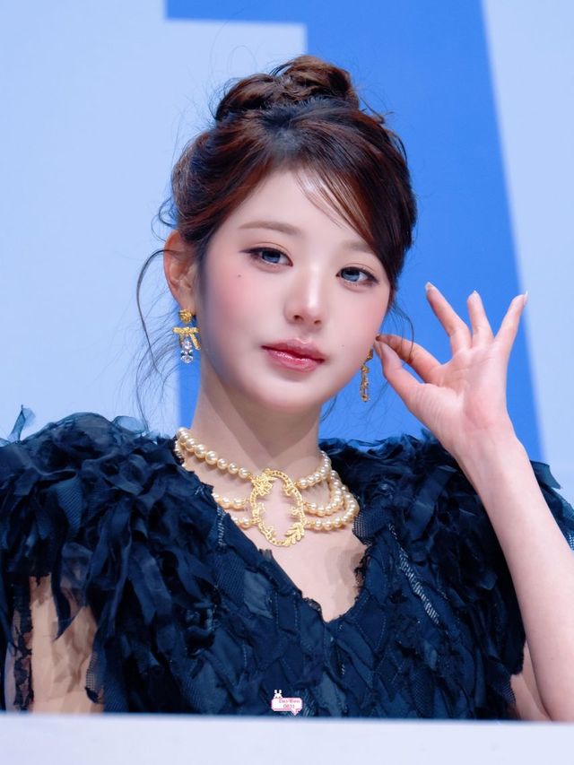 뷰티 스타일링은 장원영의 화려한 이목구비를 극대화하는 데 집중했습니다. 앞머리를 자연스럽게 옆으로 넘긴 채 정수리 높이 묶어 올린 하이 번 헤어 스타일은 깔끔하면서도 우아한 느낌을 주며, 메이크업은 투명한 피부 위에 촉촉한 광택이 도는 로즈 핑크 립과 길게 뺀 아이라인, 언더 속눈썹 강조를 통해 인형 같은 미모를 완성했습니다. 왼쪽 눈 밑의 매력점은 그녀만의 고혹적인 분위기를 더해주는 포인트입니다.