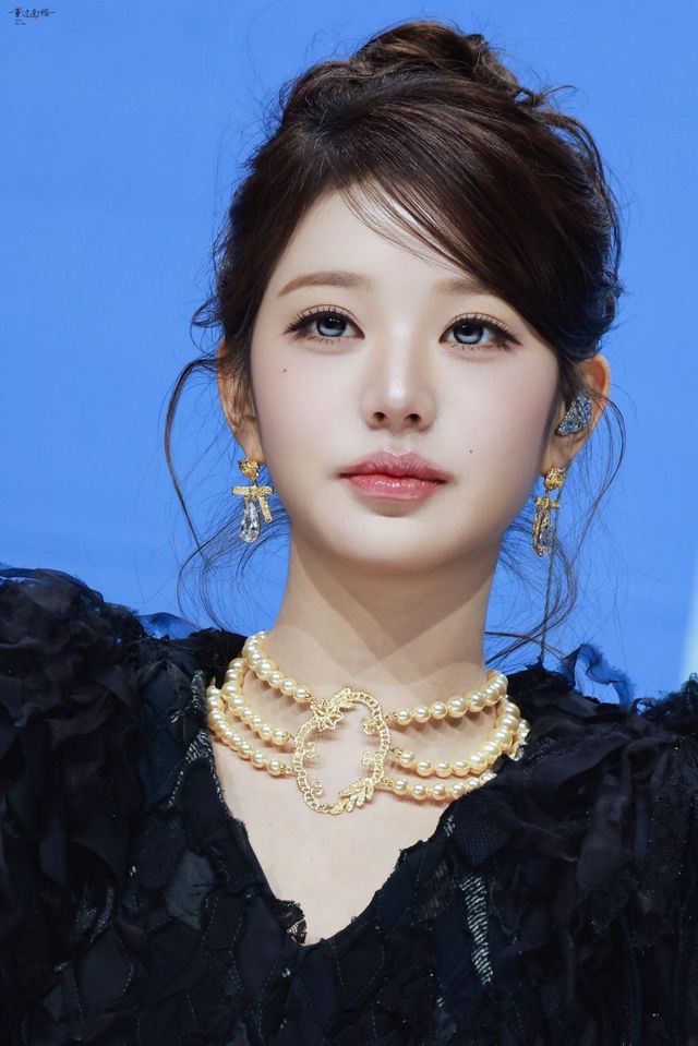 아이브(IVE)의 장원영이 깊은 바다를 연상시키는 블루 배경 앞에서, 화려한 디테일의 블랙 드레스와 럭셔리한 골드 쥬얼리를 매치하여 범접할 수 없는 우아한 아우라를 완성했습니다. 한 손을 뺨에 댄 채 정면을 응시하는 그녀의 깊은 눈빛은 정교한 메이크업과 어우러져 한 편의 명화 같은 비주얼을 보여줍니다.