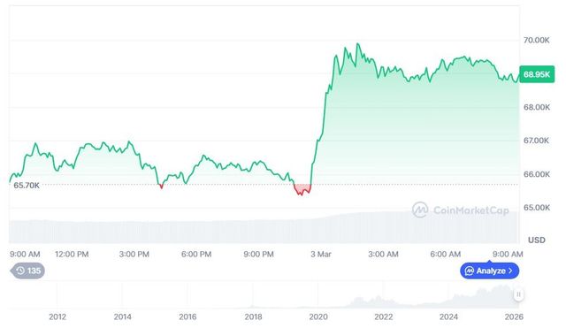 그러나 비트코인은 이란 최고지도자 아야톨라 알리 하메네이 사망 소식이 전해진 뒤 빠르게 반등했다. 트레이딩뷰 데이터에 따르면 비트코인은 공습 다음 날 초반 약 6만8200달러에 도달하며 24시간도 채 되지 않아 5000달러 하락폭을 전량 만회했다. 시장 논평가 애쉬 크립토는 "이번 상승은 갈등이 장기전으로 번지지 않을 것이라는 예측을 가격에 반영한 것"이라고 해석했다. 현재 비트코인은 6만8000달러대 안팎에서 숨 고르기에 들어간 모습이나 시장 불안은 가시지 않고 있다. (3일 기준)