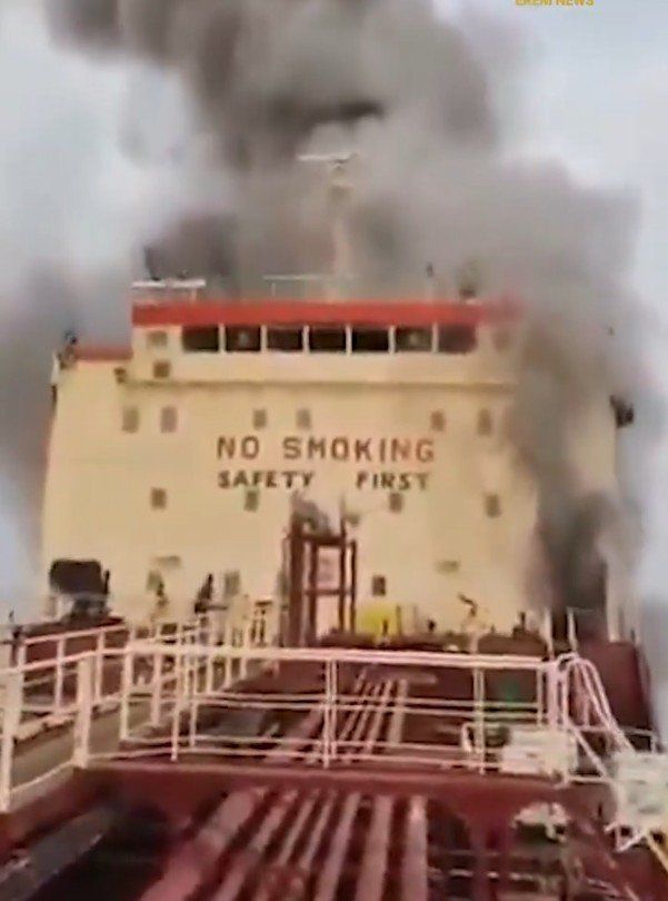 이란군 USV 공격으로 침몰하고 있는 유조선(MKD VYOM). X(구 트위터) 캡처