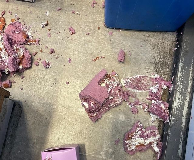 결국 해당 손님은 계산대 앞에서 롤케이크를 바닥에 던지고 매장을 떠났다. 함께 공개된 사진엔 바닥에 떨어진 제품 모습이 담겼으며, 밟힌 듯한 흔적도 확인된다.