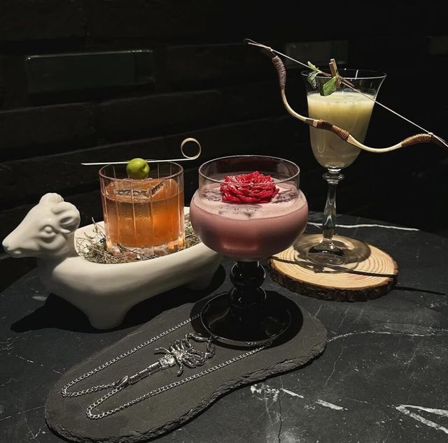 주술적인 분위기가 물씬 풍기는 주신당. 점집이 아니라 칵테일 바 맞으니, 놀라지 않아도 돼요. 이곳에서는 12지신을 테마로 한 칵테일을 선보이는데요. 돼지 칵테일을 주문하면 돼지바가 함께 나오고, 양 칵테일을 주문하면 양털을 연상시키는 솜사탕이 곁들여지는 등 각 동물의 특징을 위트 있게 표현했습니다. 자신의 띠에 맞는 칵테일을 선택하면 더욱 특별하게 즐길 수 있겠죠?