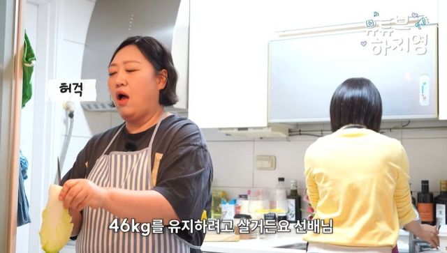 박준면은 “평상시에 뭐 먹냐”고 물었고, 하지영은 “야채만 먹는다. 나이가 있으니까 살이 안 빠진다. 제가 항상 46kg을 유지하려고 한다”라고 털어놓았다. 박준면은 황당해하는 표정을 지으면서도 공감해 주며 “배우들은 몸매 관리를 해야 해서 어쩔 수 없다”라고 말했다.