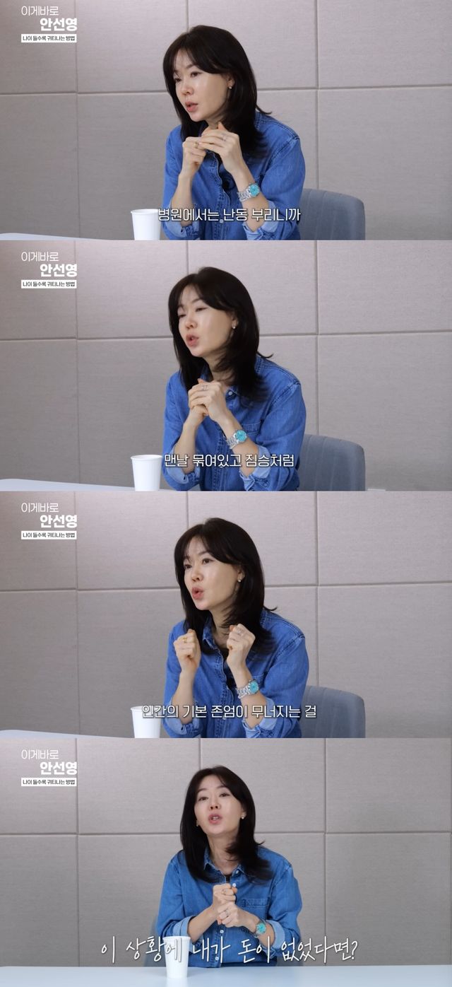안선영은 "건강이 사라지고 한 가족의 건강이 무너지면 나머지 온 가족이 다 불행했다. 그땐 돈도 소용이 없더라"고 토로했다.