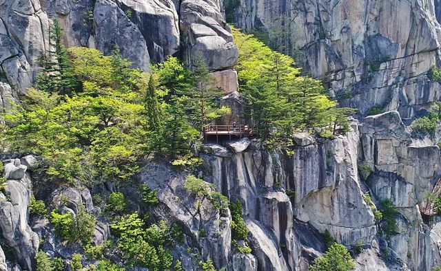 산 중턱 해발 470m 지점에 위치한 마천루는 두타산 비경의 결정체다. 깎아지른 듯한 암릉과 기암절벽이 겹겹이 에워싼 모습은 마치 빌딩 숲을 연상시킨다. 금강산 바위 위로 아슬아슬하게 조성된 잔도 데크 길을 따라 걷다 보면 두타 협곡의 광활한 풍광이 한눈에 들어온다. 거대한 바위들이 숲처럼 솟아오른 이 풍경은 '한국의 장가계'라는 별칭에 걸맞게 압도적인 시각적 경험을 선사한다. 발 아래로 펼쳐지는 아찔한 낭떠러지와 주변의 기암괴석이 어우러진 모습은 자연이 억겁의 시간 동안 조각한 예술 작품이나 다름없다.