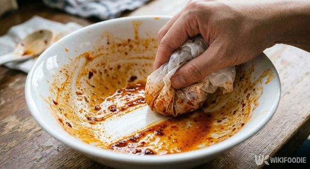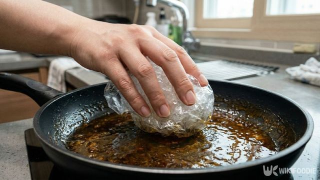 비닐을 공처럼 구기면 주름과 굴곡이 여러 겹 생기는데, 이 불규칙한 면이 굳은 기름때와 음식물 찌꺼기를 긁어내는 역할을 한다. 프라이팬 바닥에 눌어붙은 기름 찌꺼기나 짬뽕 그릇에 남은 붉은 자국도 한 번만 훑으면 비닐 표면으로 옮겨 간다.