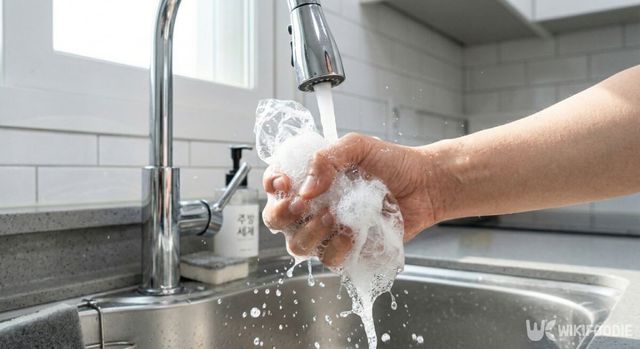 설거지 후 손끝에 남는 감촉이 개운하지 않다면, 세제를 더 짜기 전에 도구를 살펴볼 필요가 있다. 위생 비닐로 애벌 세척을 한 뒤 수세미로 마무리하는 방식은 기름 재오염을 막는 데 도움이 된다.