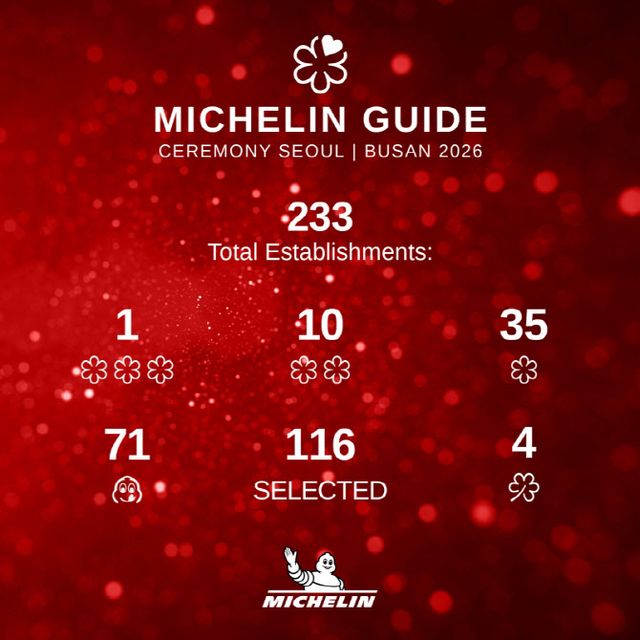 그웬달 뿔레넥 미쉐린 가이드 인터내셔널 디렉터는 “지난 10년 동안 한국의 다이닝은 양적·질적으로 폭넓은 성장을 이루었다. 서울은 전통과 혁신 사이에서 섬세한 균형을 이루며 고도로 완성된 미식 수도로 자리매김했으며, 부산은 지역 고유의 특성과 요리적 창의성을 바탕으로 역동적인 미식 허브로 빠르게 부상하고 있다”고 설명했다.
