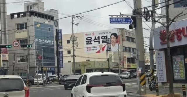현수막에는 환하게 웃는 후보 사진과 함께 ‘윤석열’이라는 이름이 크게 박혀 있어 멀리서 보면 대통령 선거 포스터를 떠올리게 한다는 말까지 나올 정도다.