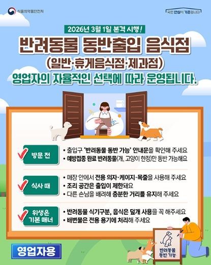 반려동물 동반출입 음식점(일반·휴게음식점·제과점)