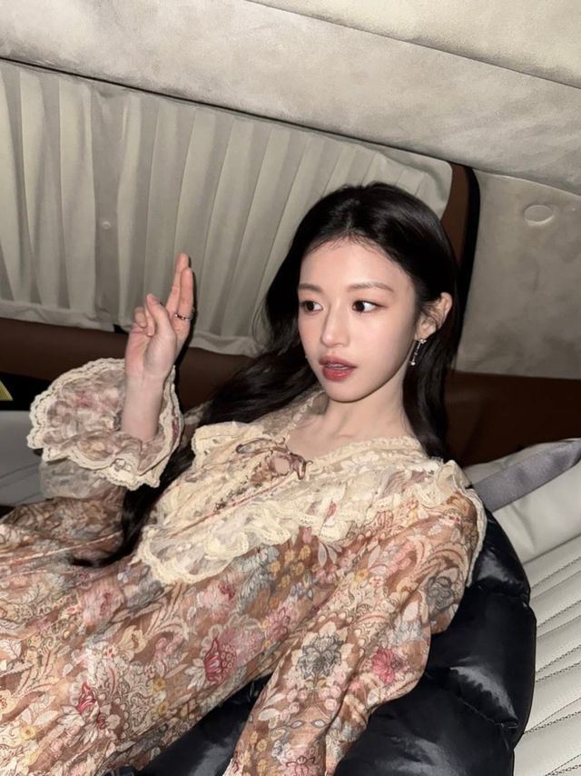 레드벨벳 조이는 파스텔 그린과 화이트 톤의 원피스로 봄과 잘 어울리는 코티지코어 룩을 선보였습니다. 여기에 가볍게 걸친 가디건과 단정한 플랫 슈즈를 더해 특유의 사랑스러운 분위기를 강조했죠. 과한 장식 없이도 충분히 로맨틱한 무드를 완성하는 가장 간단한 방법입니다.