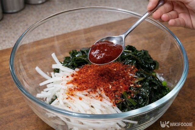 양념은 초고추장을 중심으로 만든다. 고춧가루와 다진 마늘을 넣어 감칠맛을 더한다. 여기에 매실청과 식초를 넣어 새콤달콤한 맛을 맞춘다.