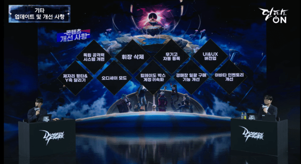 이외에도 재료 아이템에 대한 변경 사항이 다수 소개됐으며, 여 거너 도트 개선, 복수의 스킬을 하나의 단축키로 활용 가능한 스킬 체인 시스템, 스킬 커맨드 시스템 개편, 독립 공격력 시스템 개편, 휘장 삭제, 무기고 자동 등록, UI 및 UX 버전업, 오디세이 모드, 경매장 일괄 구매 기능 개선, 아바타 인벤토리 개선 등 방대한 분량의 개선 업데이트가 예고됐다.