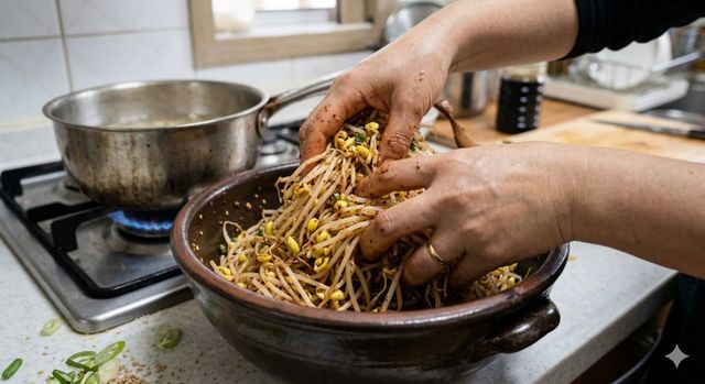 삶는 법만큼 중요한 것이 무치는 순서다. 물기를 짠 콩나물을 볼에 담고 가장 먼저 넣어야 할 것은 소금이 아니라 기름이다. 참기름이나 들기름을 먼저 넣고 가볍게 버무리면 기름이 콩나물 겉면을 코팅해준다. 이렇게 하면 나중에 소금이나 간장을 넣었을 때 수분이 빠져나오는 것을 막아줘서 식사 끝까지 물 생기지 않는 아삭한 무침을 즐길 수 있다.