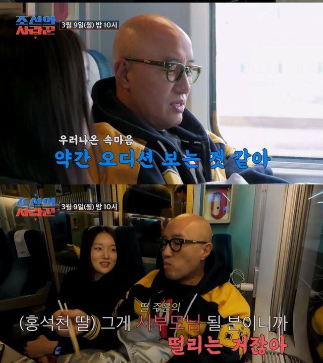 선공개된 영상에서 딸과 함께 상견례 장소로 향하는 기차에 몸을 실은 홍석천은 마시던 커피를 흘리는 등, 초조함을 감추지 못했다. 그런 홍석천의 곁에서 곧 결혼을 앞둔 딸이 홍석천을 살갑게 돌보는 모습은 훈훈함을 자아냈다.