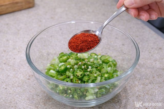 1. 대파와 청양고추를 잘게 다진 뒤 양념장 재료를 섞어 미리 만든다.