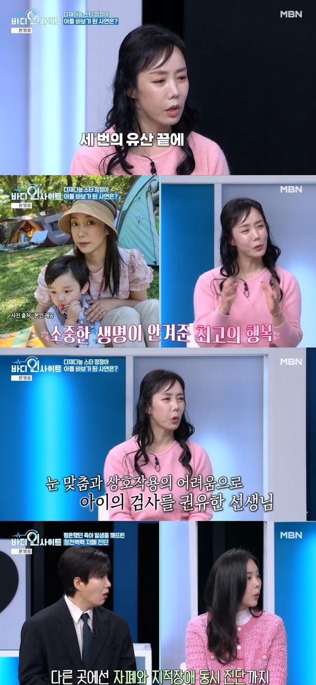 정정아의 아들은 당시 한 곳에서는 자폐, 한 곳에서는 자폐와 지적 장애 판정을 받았다고.