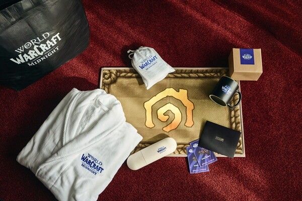또한, 숙박 시 월드 오브 워크래프트: 한밤이 브랜딩된 가운 및 슬리퍼, 하우징 로고가 새겨진 욕실 매트, 어메니티, 머그컵, 그리고 게임 내에서 사용 가능한 ‘증오벼림 불꽃이륜차’ 탈것 쿠폰 2매가 포함된 굿즈 세트 1종을 받을 수 있다.