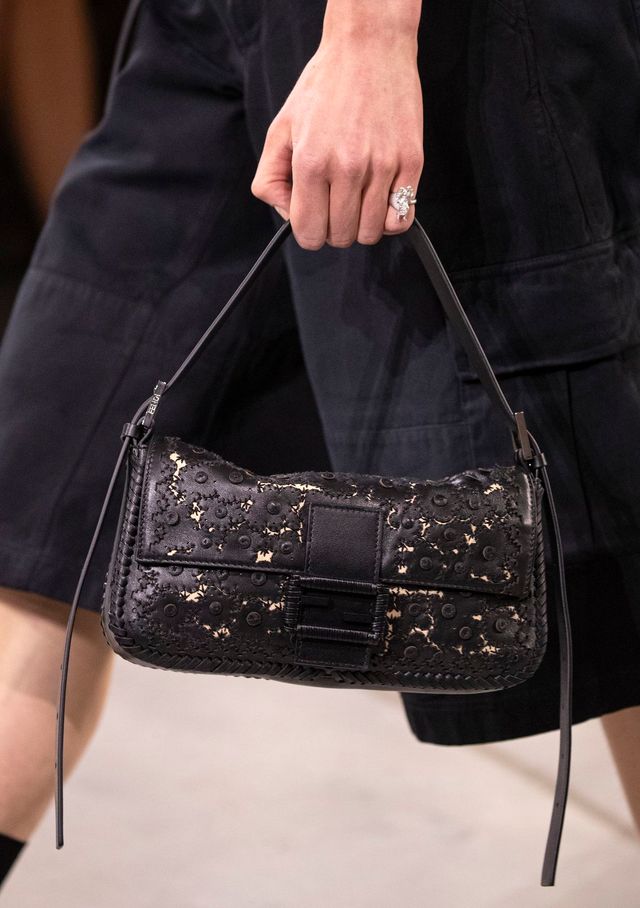 물론 이번 컬렉션에서 바게트 백도 빼놓을 수 없다. 캔버스, 가죽, 비즈 프린지 장식 등 다양한 버전으로 다시 등장했다. 키우리가 1990년대 실비아 벤투리니 펜디와 함께 이 가방을 만들었다는 사실을 떠올리면 묘한 순환처럼 느껴진다. 여기에 “5 Sisters” 자수가 들어간 니트 스카프가 더해졌다. 하우스의 역사가 다시 읽혔다.
