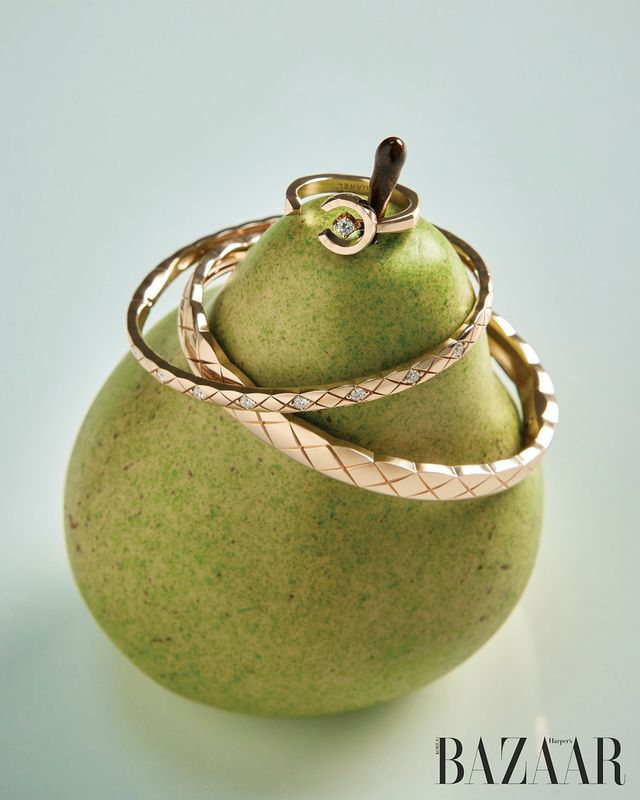 (위부터) 다이아몬드를 세팅한 베이지 골드 링, 다이아몬드 세팅의 베이지 골드 브레이슬릿, 베이지 골드 브레이슬릿은 모두 ‘코코 크러쉬’ 컬렉션 Chanel Fine Jewelry.