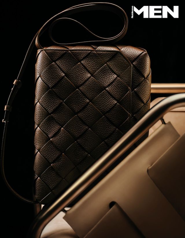 허그 백 특유의 감싸는 구조를 위빙 레더로 풀었다. 가방을 감싸 안는 듯한 스트랩 디테일과 어우러져 단정하면서도 힘 있는 인상을 완성한다. 장식은 복잡하지 않지만, 가죽 자체의 짜임과 구조만으로도 이미 완전하다. 메탈과 가죽이 어우러진 의자 Henge by YOU AND US.