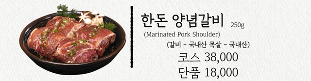 그가 공유한 메뉴판 사진엔 ‘한돈 양념갈비’ 이미지와 함께 갈비, 목살 부위가 포함돼있다는 안내 문구가 담겼다.