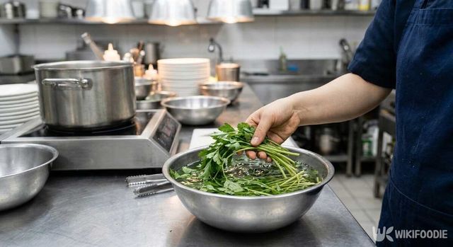 데친 나물은 바로 찬물에 넣어 두세 번 헹군다. 이렇게 하면 나물 색이 선명하게 살아 있고 풋내도 줄어든다. 이후 물기를 단단히 짠 뒤 먹기 좋은 길이로 손으로 가볍게 정리한다.