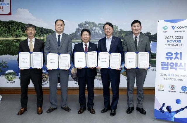 [파이낸셜경제=김영란 기자] 한국배구연맹에서 주최하는 KOVO컵 프로배구대회가 2027, 2028년 2년 연속 제천시에서 개최된다. 제천시는 11일 한국배구연맹(KOVO)과 '2027, 2028 제천·KOVO컵 프로배구대회' 유치 협약을 체결하고 대회 개최를 공식 확정했다.