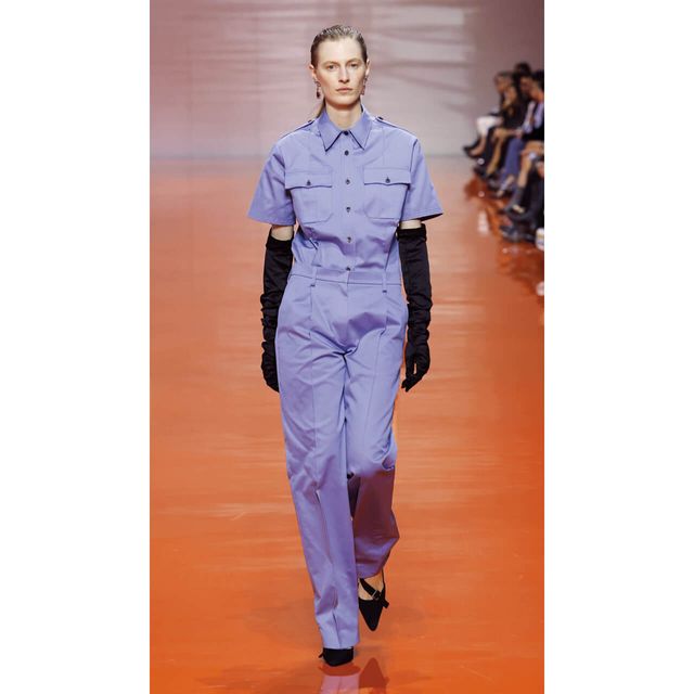 유니폼이 이브닝드레스와 동등한 위상을 가질 수 있을까. 일하는 여성이 보편화된 사회에서 여성과 노동의 정체성에 질문을 던지는 워크웨어 스타일이 떠올랐다. 견고한 작업복을 이브닝 글러브와 이어링으로 스타일링한 프라다, 워크 재킷과 앞치마를 통해 일하는 남성과 여성의 모습을 조명한 미우미우까지. 상반된 요소가 어우러지는 불협화음 속에서 새로운 우아함이 탄생한 순간이다.