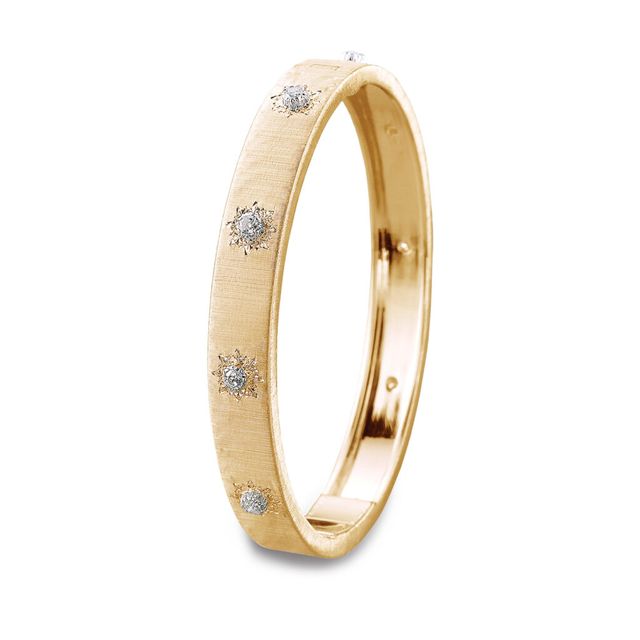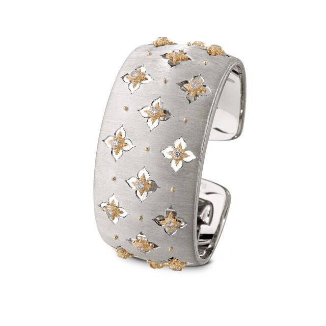 AB 모든 작품이 메종의 정신과 DNA를 담고 있기 때문에 어느 하나를 선택하기는 어렵습니다. 부첼라티의 아이덴티티는 어느 한 작품에 머무는 것이 아니라, 오랜 시간 축적된 스타일을 통해 형성되기 때문입니다. 다시 말해 하나의 아이콘을 반복해 강화하기보다 세대를 거치며 다듬어진 미학과 장인 기술을 통해 메종의 정체성을 쌓아가는 거죠. 반짝 유행하는 디자인을 앞세우기보다 시간이 지나도 알아볼 수 있는 일관된 언어를 지키며 아이덴티티를 보여주려고 합니다. 그럼에도 많은 사람이 마크리 라인을 상징적으로 이야기합니다. 마크리는 마리오의 아이디어에서 출발해 지안마리아에 의해 완성되었고, 지금도 저를 통해 디테일한 변주와 확장을 이어가고 있습니다. 주얼리 전체를 촘촘히 채우는 인그레이빙은 광택을 번쩍이게 하기보다 부드럽게 가라앉히며, 마치 벨벳처럼 깊이 있는 분위기를 만듭니다. 여기에 더해지는 다이아몬드 세팅 역시 존재감을 과시하기보다 금속 위에 더 섬세한 구조를 더하는 데 가깝습니다. 그래서 마크리는 즉각적인 화려함보다는, 시간이 지날수록 깊어지는 아름다움을 실감하게 하는 부첼라티 특유의 우아함을 가장 잘 보여주는 컬렉션이죠.