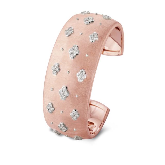AB 창립자의 직감에서 비롯된 본능적 선택이었다고 생각합니다. 그는 자신의 창의성을 따랐고, 그 결과 매우 독특한 스타일이 탄생했죠. 놀랍게도 그 미감은 시대를 넘어 꾸준히 공감을 얻고 있습니다. 20세기 초 유럽 주얼리가 원석의 크기와 화려함으로 존재감을 드러내던 흐름 속에서, 부첼라티는 장인정신을 기반으로 금속의 표면을 정교하게 가공해 빛을 머금은 우아함을 추구했습니다. 미세한 인그레이빙의 결과 섬세한 질감처럼 가까이에서 보아야 비로소 드러나는 아름다움을 제안한 셈입니다. 화려함이 극에 달할수록 사람들은 오히려 그와 구별되는 품격을 찾기 마련이고, 바로 그 차이가 오늘날까지 이어지는 부첼라티 메종의 정체성이 되었습니다.