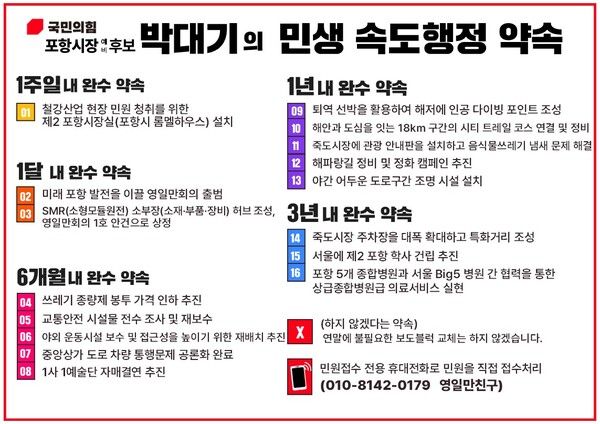 박 예비후보는 "포항은 대한민국 산업화를 이끌어온 도시지만 이제는 도시의 체질을 바꾸는 새로운 도약이 필요한 시점"이라며, "20년 중앙 경험과 인적 네트워크를 쏟아부어 기한 내에 결과로 증명하는 시정을 펼치겠다"고 밝혔다.