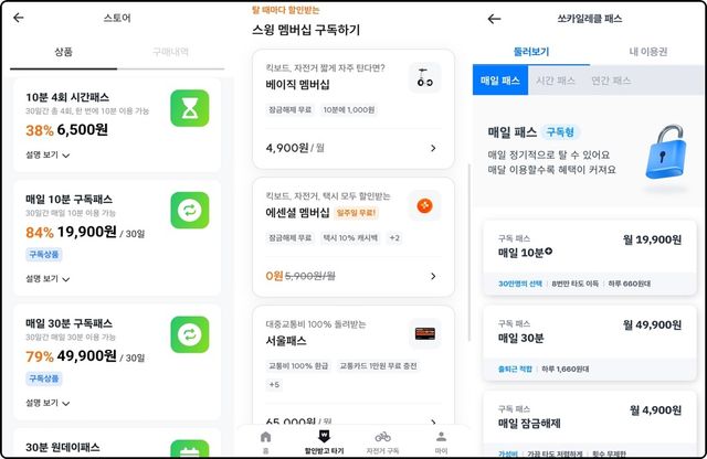 단거리 출퇴근이나 중거리 이동이 잦은 이용자는 시간 기반 구독 패스를 활용하면 비용을 줄일 수 있다. 매일 10분 이내 이동하는 출퇴근 이용자의 경우 월 1만9900원인 지쿠의 '매일 10분 구독패스'와 쏘카일레클의 '10분+ 구독패스'를 이용하는 게 유리하다.