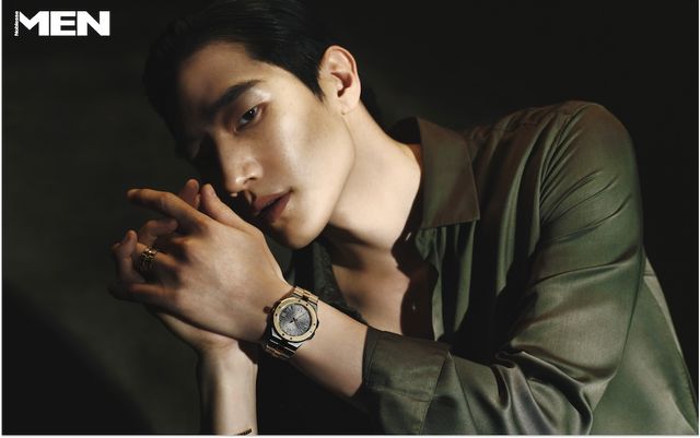 알프스산맥을 호령하는 위풍당당한 독수리에게 영감받은 알파인 이글 41. 독수리의 홍채를 본떠 갈바닉 처리한 그레이 다이얼 조화를 이루는 18K 에티컬 로즈 골드 베젤, 스테인리스스틸 케이스 및 브레이슬릿이 깊이 있는 우아함을 드러낸다. 쇼파드 01.01-C 칼리버를 탑재했고, 60시간의 파워리저브를 제공한다. 반사에 따라 풍부한 빛을 발산하는 정육면체의 기하학적 특징을 영속적인 디자인 코드로 해석한 아이스 큐브 컬렉션. 18K 에티컬 로즈 골드 소재 아이스 큐브 링과 뱅글 모두 Chopard.올리브그린 셔츠 John Varvatos.