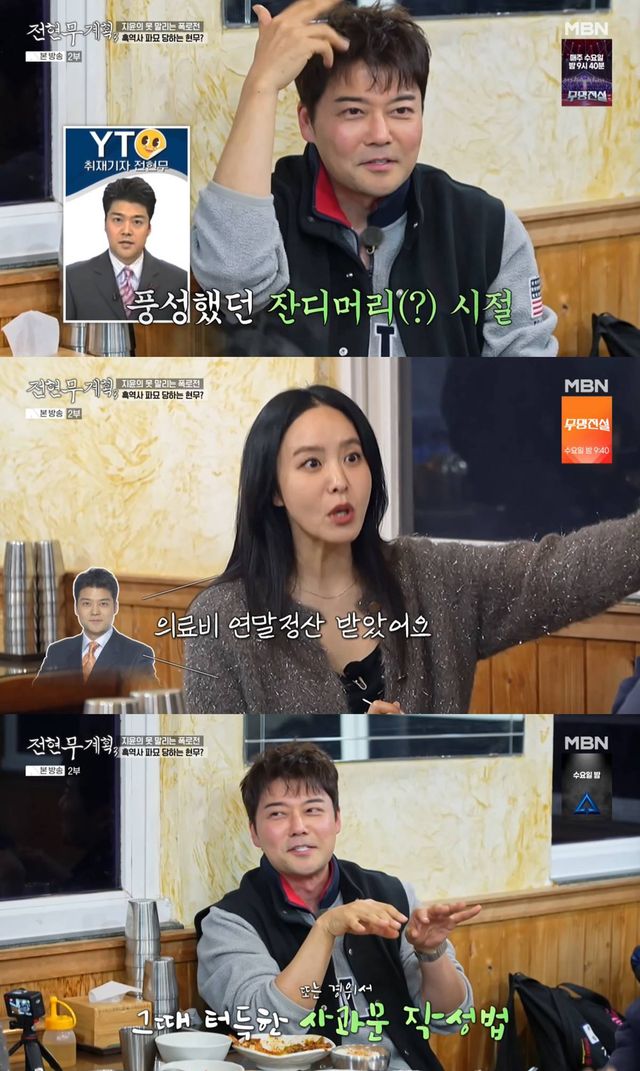 전현무도 이를 인정하며 "그때부터 사과문 연습이 됐다"고 했고, 박지윤은 "시말서 잘 쓰기로 유명했다"고 거들었다. 이어 전현무는 "그 당시는 박지윤 선배뿐만 아니라 그 당사자한테 사과 많이 하고 다녔다"고 털어놨다.