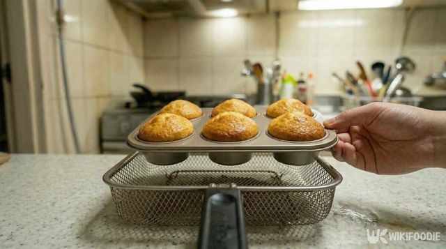 찹쌀가루와 타피오카 전분을 넣고 고르게 섞은 뒤 체에 한 번 걸러낸다. 이 단계를 거쳐야 반죽 속 덩어리가 사라지고 구웠을 때 속이 고르게 익는다. 버터를 고르게 바른 틀에 반죽을 90% 정도까지 채우고, 예열한 에어프라이어 180도에서 13~15분 정도 굽는다.