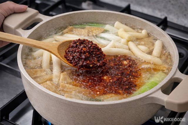 여기에 후추를 여러 번 갈아 넣고 식용유를 약간 추가한다. 소량의 기름은 국물을 묵직하게 만들고 양념이 떡에 착 달라붙게 돕는다. 떡볶이 전문점의 걸쭉한 국물 느낌을 재현하는 중요한 지점이다.