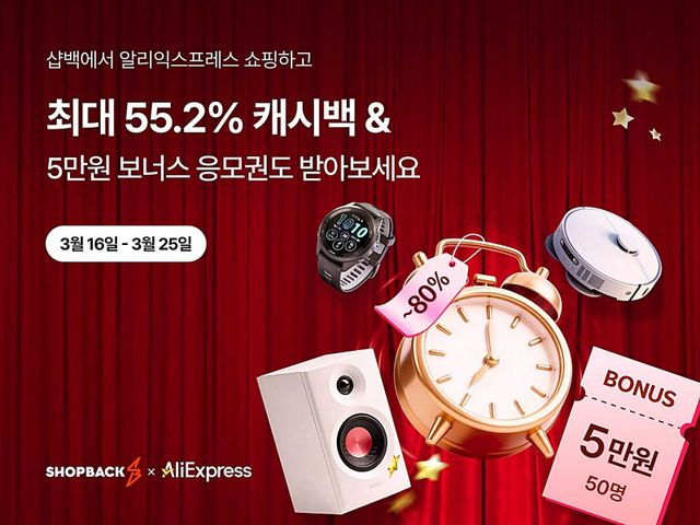 샵백코리아가 알리익스프레스 16주년 그랜드 세일 기간에 맞춰 특별 캐시백 프로모션을 진행한다. 행사 기간 동안 샵백을 경유해 알리익스프레스에서 결제하면 신규 고객은 최대 55.2%, 기존 고객은 최대 19.2% 캐시백을 받을 수 있다.