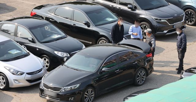 한 중고차시장에서 시민들이 중고차를 살펴보고 있다. 기사의 이해를 돕기 위한 사진 / 뉴스1