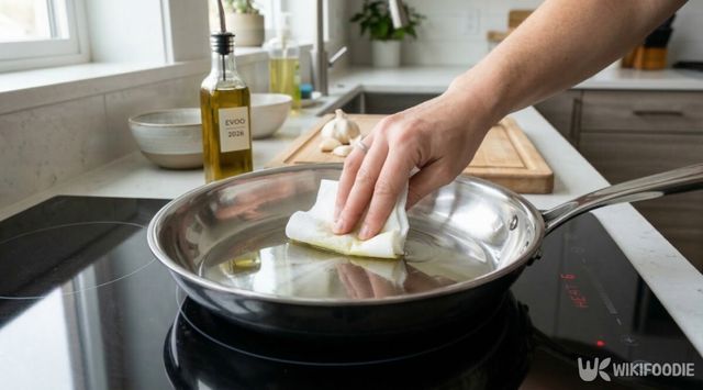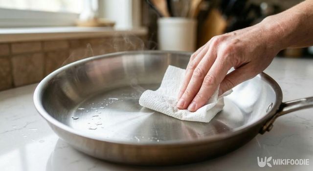 세척과 끓이기 과정을 마쳤다면, 마지막으로 기름칠을 하는 과정이 남는다. 처음 프라이팬을 사용할 때 이 작업을 해두면, 이후 요리할 때 음식이 달라붙는 일을 줄일 수 있다.