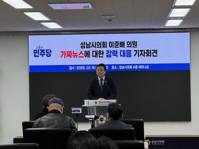이 의원은 16일 성남시의회에서 기자회견을 열고 “최근 A일보 일부 기사에서 본인과 관련된 개인 채무 및 투자금 문제, 지인과의 금전 관계 등을 언급하며 확인되지 않은 주장과 일방적 제보에 기반한 보도가 반복되고 있다”며 “이는 객관적 사실 확인 없이 특정 주장만을 중심으로 구성된 명백한 사실 왜곡 보도”라고 지적했다.