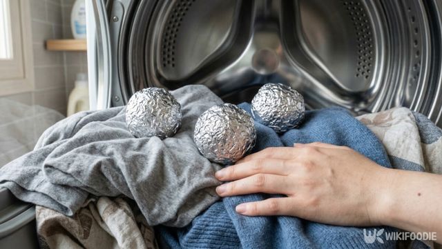 이제 건조기에 빨래를 넣을 때 이 쿠킹호일 공을 함께 넣어주면 된다. 건조기가 작동하면서 옷 사이에서 마찰이 계속 일어나는데, 쿠킹호일 공이 함께 움직이면서 옷 사이에 생기는 정전기를 줄이는 데 도움을 준다.