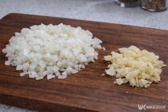 2. 양파, 통마늘, 대파를 잘게 다져 준비한다.
