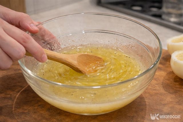 4. 참외 주스에 레몬즙 1큰술, 올리브오일 1큰술, 소금 한 꼬집을 섞어 소스를 만든다.