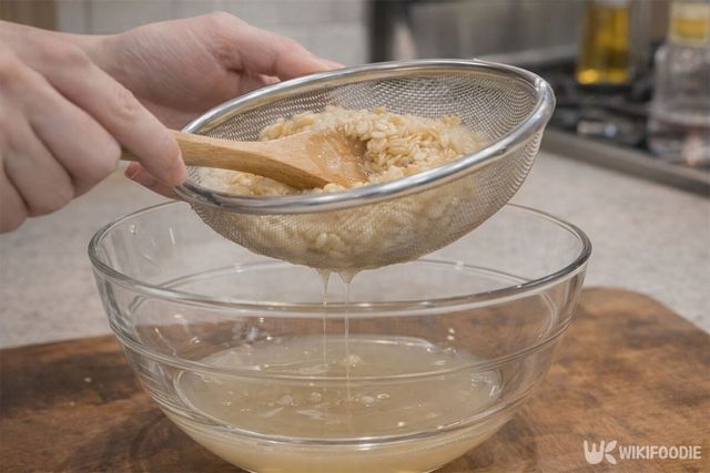 3. 파낸 속을 체에 걸러 참외 주스를 만든다.